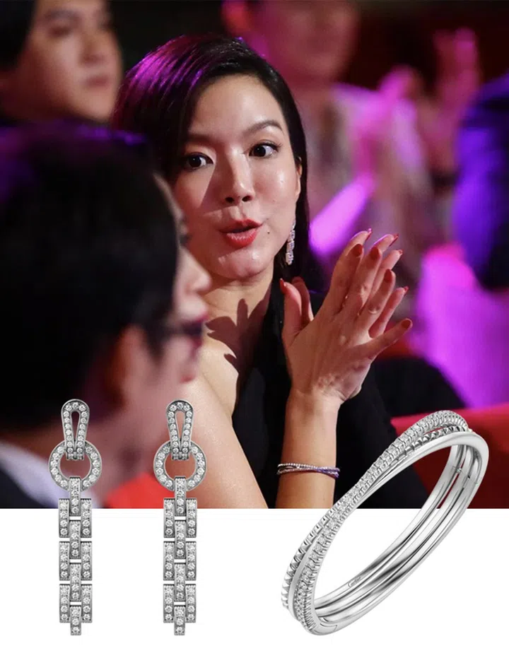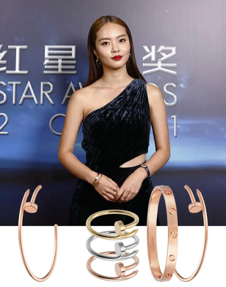 沈家玉以Clash de Cartier铆钉首饰,为一身柔美的Ralph Lauren平口礼服注入“双面”的叛逆态度。