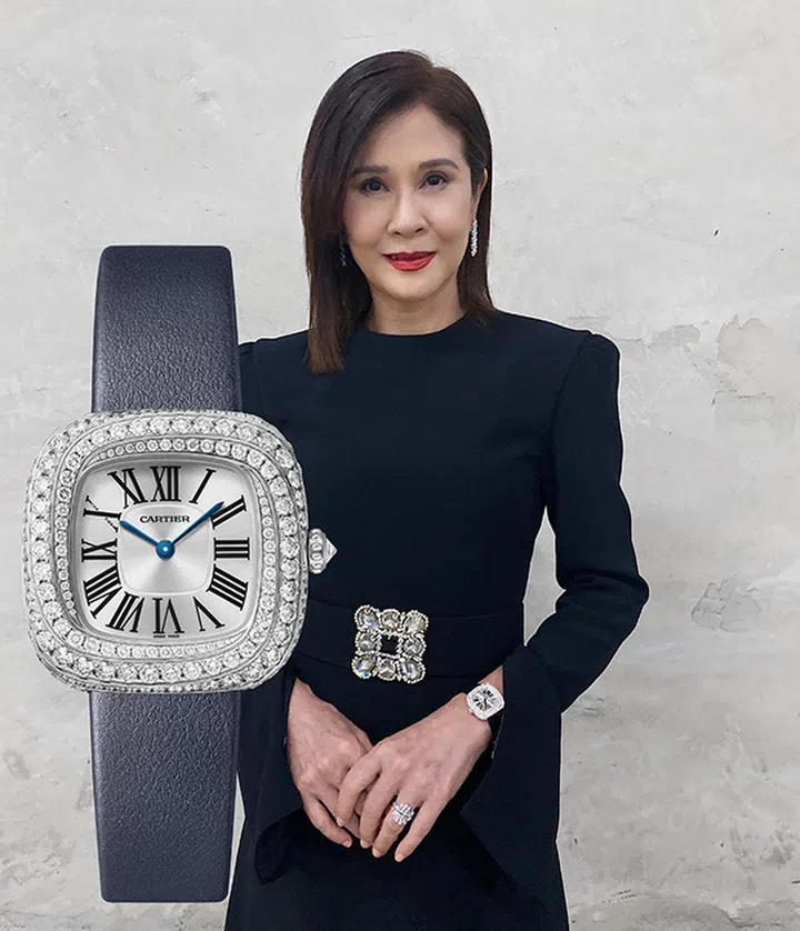 恭喜林梅娇《红星大奖2022》当晚赢得最佳女配角!以一袭来自本地设计师Andrew Gn的黑色晚礼服,以及Cartier Coussin de Cartier中型,白金及钻石表壳,石英机芯,皮革表带腕表出席,整个人散发着时尚的高雅气息。