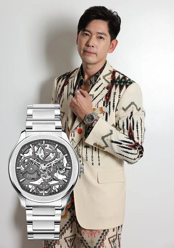 陈罗密欧今年《红星大奖2022》造型挥别去年的暗黑蓝色迷彩绅士风,转型阳光“波西米亚王子”风,手腕佩戴上Piaget Polo Skeleton 42mm,钢质表带自动机芯腕表,以简洁设计腕表完美中和身上的印花造型。
