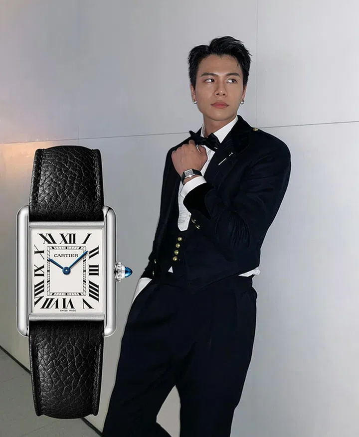 鲜明的绅士风Ralph Lauren西装穿在容启航身上实在太帅,让人心动不已!他选择了Cartier的Tank Must大型钢质表壳、皮革腕带腕表为重点配饰,点缀着他高雅的“王子”形象。