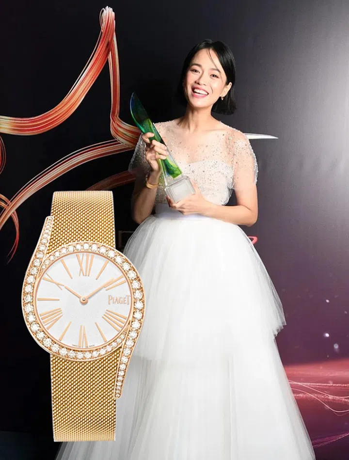 情侣档陈凤玲与徐鸣杰“双喜临门”赢得《红星大奖2022》的奖项。陈凤玲当晚以一袭Prabal Gurung 薄纱晚礼服领奖十大最受欢迎女艺人奖。手腕上佩戴着Piaget Limelight Gala 32mm,18k玫瑰金以及钻石表壳腕表,金光闪烁地为造型加持、升华。