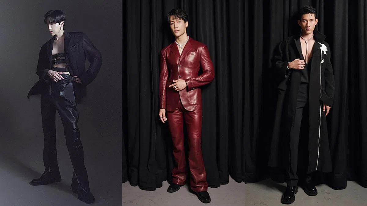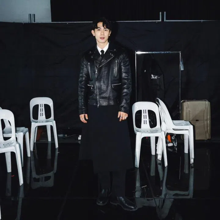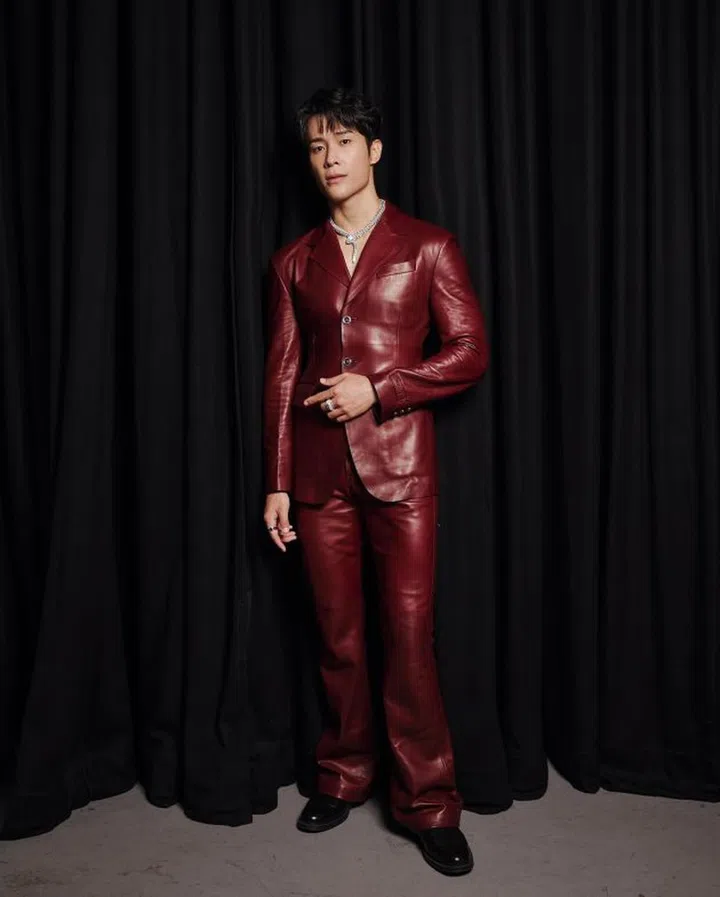 孙英豪的《红星大奖2024》造型,穿着一套来自PONDER.ER(@ponder.er,今年入围LVMH青年时装设计师大奖半决赛的香港创意二人组)的外套,并搭配皮裤、皮带装饰及Bulgari珠宝,展现出品牌主张的“流动的男性气质”。