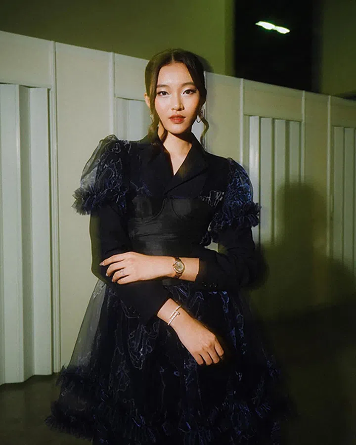叶佳昀以一身超抢眼的暗黑风Noir Kei Ninomiya亮相,并搭配Cartier珠宝及腕表。