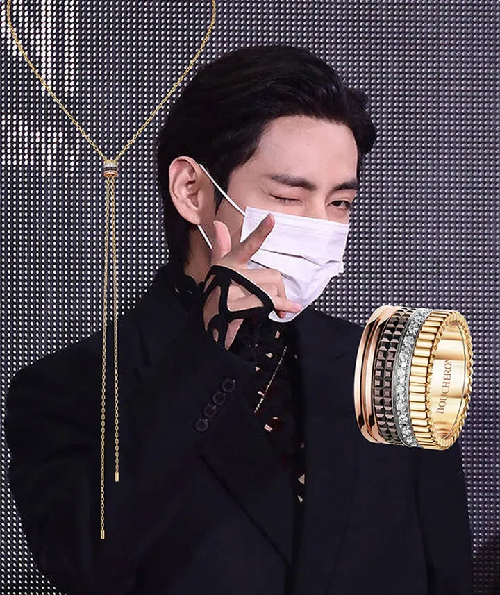 早前,韩国的防弹少年团BTS出席The Fact Music Awards 2021,也集体佩戴了Boucheron的精美珠宝。包括来自Quatre、Serpent Bohème及Architecture系列的多款设计。