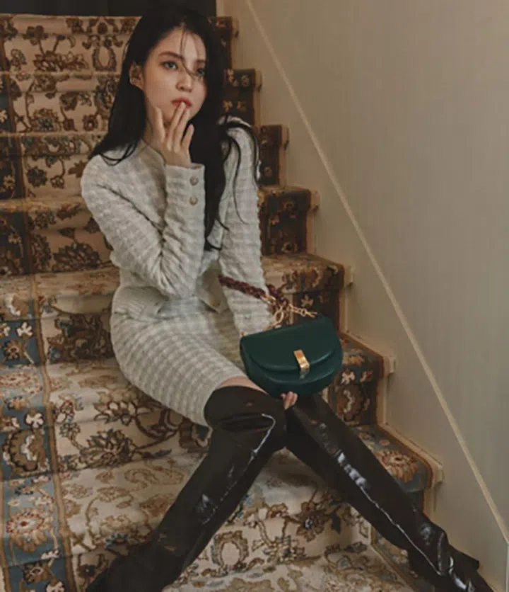 想要打造具有专业感的通勤装,参考韩素希的套装短裙造型,尤其适合赶着出门上班的忙碌早晨,不需要费脑力配搭,一套搞定!想要玩转造型,也可以把套装“分拆”,配搭不同的单品,穿出新意。配合本地的炎热天气,可以把长靴换成高跟鞋,也更适合办公室穿搭。