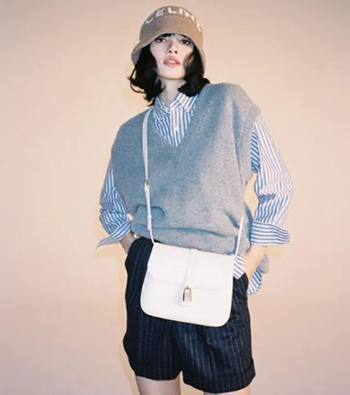 一件剪裁精良的扣领衬衫,绝对是衣柜必备的基础单品,除了配搭西装裤和西装外套,也可以像Blackpink成员Lisa一样,套上一件针织马甲,配搭短裤和斜挎包,不仅穿出层次感,青春时尚度也升级哦!
