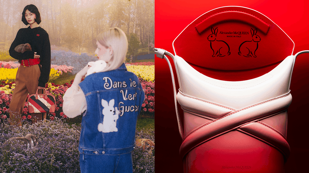 Burberry的兔年系列着重展现品牌的冒险精神及自由主张,巧妙地用兔耳组合出Thomas Burberry monogram,并以兔子元素贯穿整个系列(品类覆盖女装、男装、童装到Lola手袋等时尚配件)。此外,系列中背靠背设计的兔子图案,还用兔耳圈出爱心图案,结合反差感强烈的黑白主调,令造型可爱又有型。