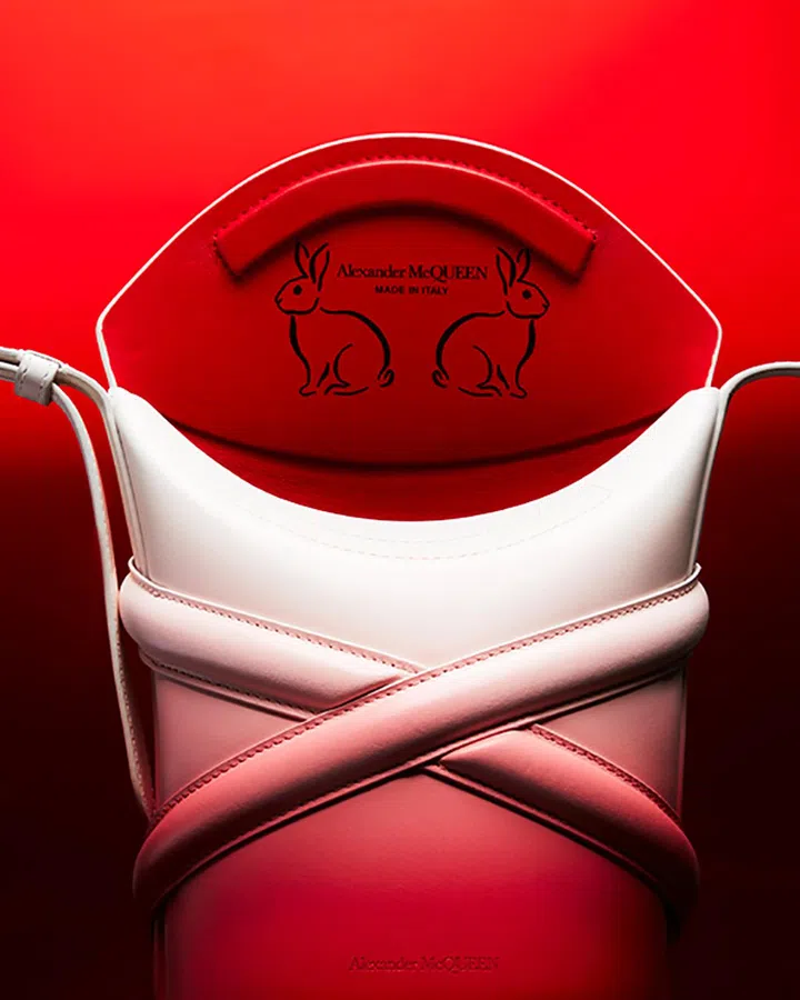 Alexander McQueen的兔年限定系列,以寓意好运和喜庆的红色为主色,并融入柔和的象牙白,打造了一系列手袋及小型皮具。包括高人气袋款The Curve,以及不同尺寸的Bow手袋。并结合独特的孪生兔形象(源自McQueen London Studio打造的艺术作品),祝福新一年好事成双。