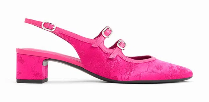 来自品牌的农历新年系列,采用抢眼且时尚的fuchsia色调,和少女感十足的玛丽珍鞋型,新年时搭配两件套现代旗袍或甜美连衣裙,喜庆又上照。
