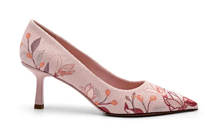 来自Pedro的布面高跟鞋,鞋面装饰浪漫花卉图案,并有浅粉和浅蓝两种温柔色调可选,搭配优雅的修身旗袍或日常裙装都没问题。
