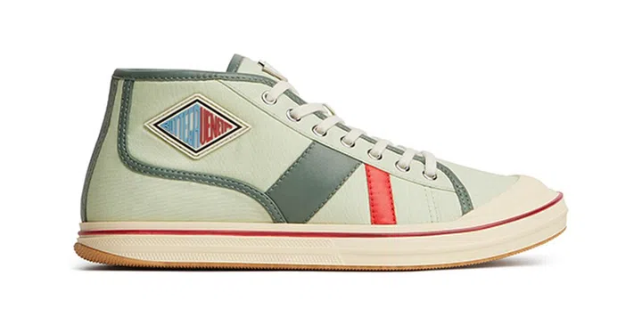 Eliot运动鞋采用中帮设计,展现复古运动风格和简洁的线条。鞋面使用轻盈的夏季帆布,搭配显眼的小牛皮装饰和复古细节,例如鞋底上褪色的红色线条。灵感来自1980年代的经典篮球鞋,选用的颜色展现了2025夏季系列的主题:玩乐与青春。鞋舌上的金属“BV”徽章和菱形橡胶标贴为鞋子增添了特别的设计感,灵感来自Bottega Veneta的经典档案。鞋面采用巴拿马编织棉帆布,既坚固又舒适,提升了耐用性,适合日常穿着。