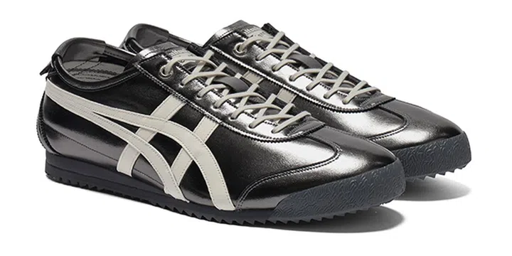 MEXICO 66 SD在经典 MEXICO 66 的基础上,融入金属光泽设计,打造更具潮流感的时尚新风格。鞋面采用金属质感皮革,呈现细腻光泽效果,搭配流畅的线条设计,增添层次感与时尚感。此次系列推出六种亮眼配色,其中银色款尤为吸睛,既低调又充满未来感,轻松驾驭各种造型。
