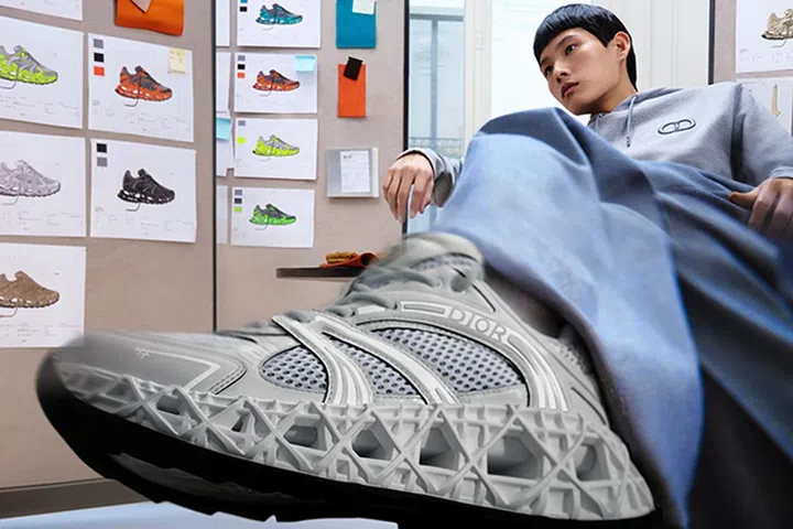新款B35 NXXT巧妙融合了经典与前卫,展现了品牌的现代气质。鞋面采用镂空的藤编网格设计,既大胆又舒适,突出了鞋底的立体感,完美平衡了时尚与舒适感。除了灰色,还提供了多种时尚色调,从经典黑白到带有橙色、蓝色或霓虹黄色点缀的款式,还有迷人的米色与棕色草编款式。鞋面上的“Dior”标志和鞋头的“47”符号致敬品牌历史,纪念了Christian Dior于1947年首次展示时装的时刻。