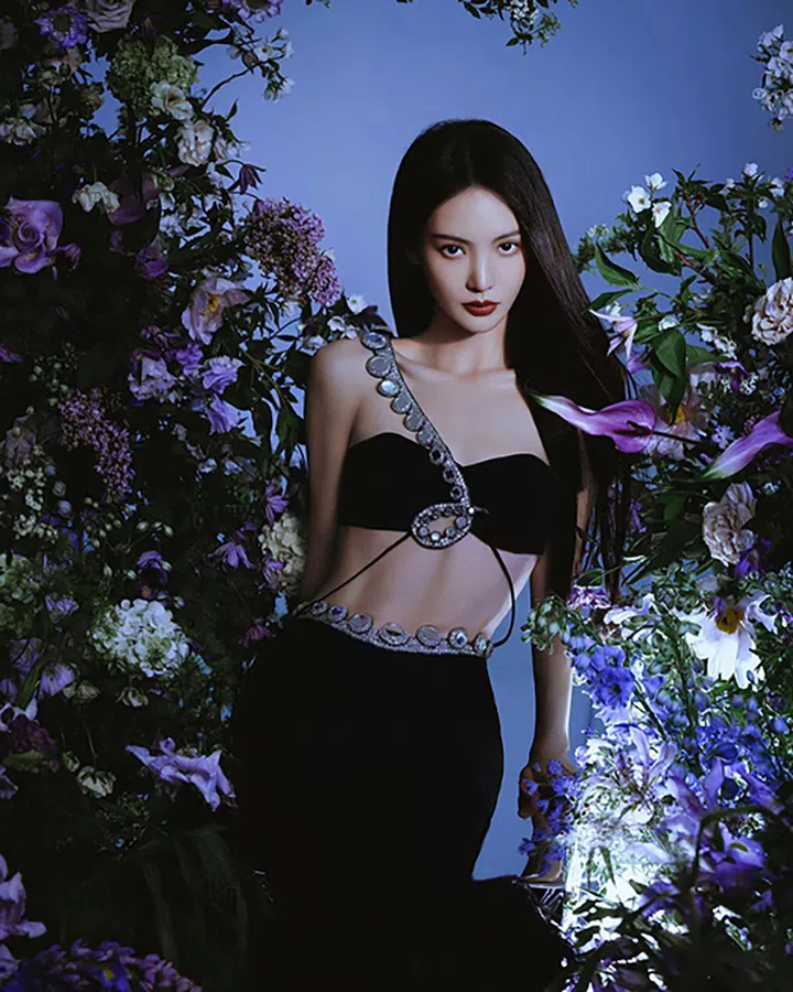 Jisoo在表演个人新曲《Flower》时,也穿着了David Koma 2023秋冬系列的镂空花卉红色连衣裙。David Koma不仅以其精湛剪裁和前卫的设计风格著称,也非常注重探索女性形态,尤其擅长以极简线条凸显性感身材。