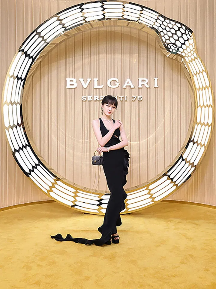 演员文淇早前3月出席Bvlgari Serpenti系列75周年艺术感,选穿了David Koma 2023早春系列的荷叶边开衩黑色长裙,腰间带有性感挖洞设计,外加服装修长的线条,穿起来竟超有灵蛇神韵,非常应景。