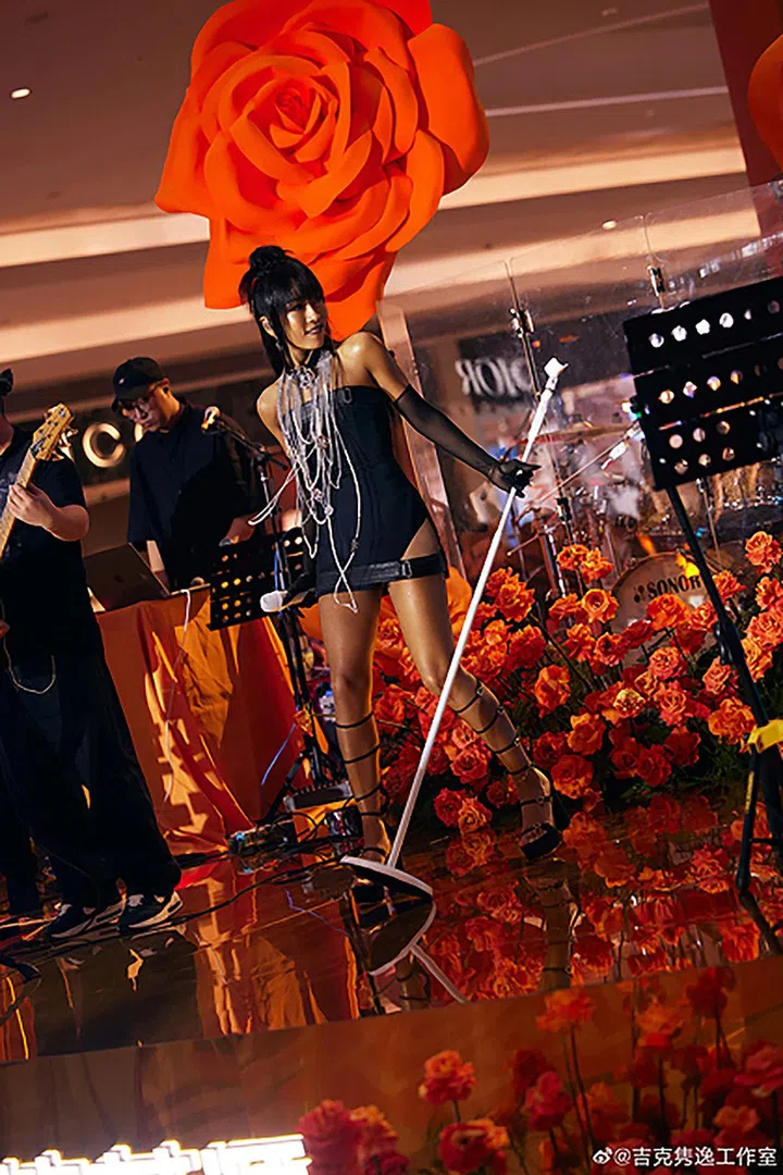 另一歌手吉克隽逸出席2023超能音乐会,穿着David Koma 2023早春系列连衣裙搭配炫目Le Fame项链及Gianvito Rossi系带厚底高跟鞋,造型比品牌模特还更胜一筹。