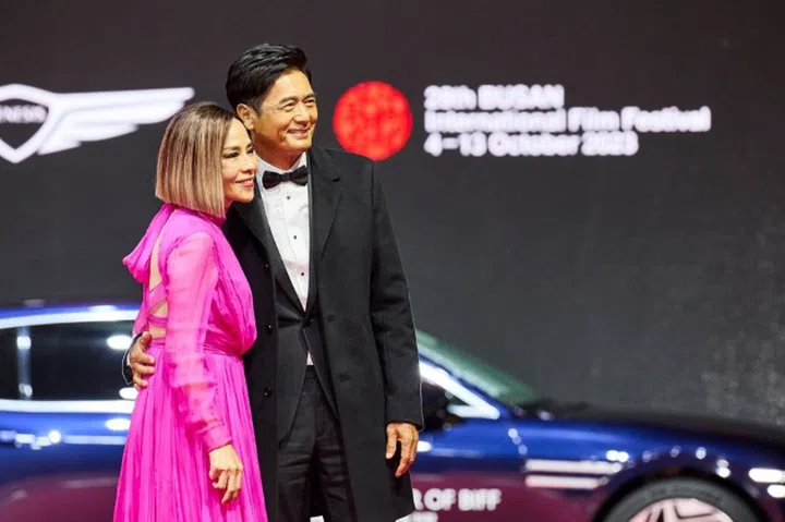 香港影帝周润发也来咯!身着燕尾服的他状态绝佳,丝毫看不出年龄。周润发这次和妻子一同甜蜜踏上影展红毯,结婚多年的两人还是恩爱有加~ 今年庆祝出道50年的周润发,曾出演过无数部脍炙人口的电影,获颁“亚洲电影人”可是实至名归,釜山影展甚至以“亚洲电影的英雄”来称呼他。