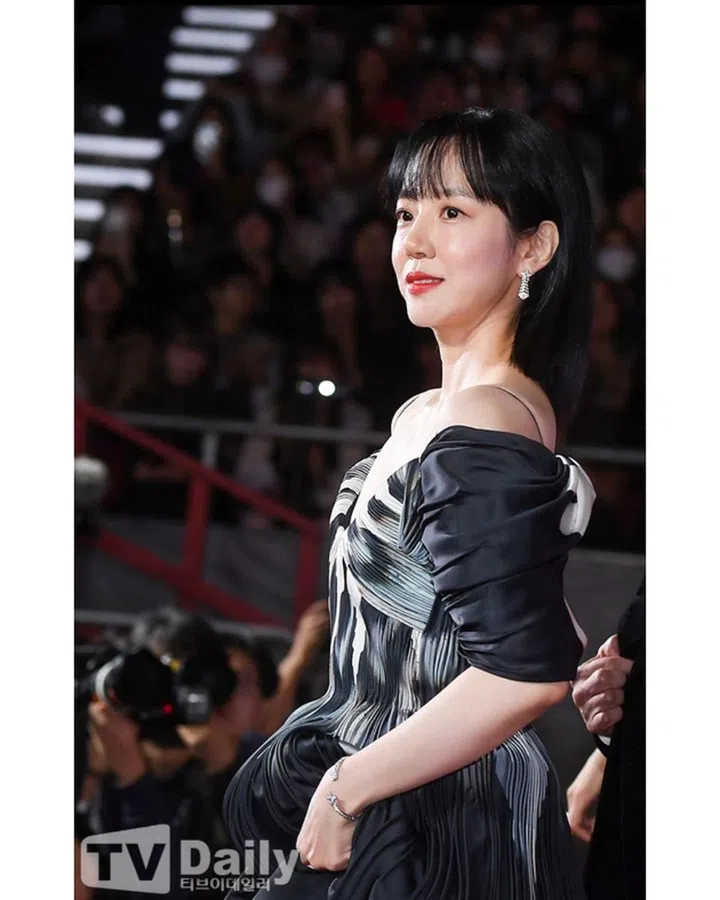 刚在Disney+剧集《Moving》表现亮眼的韩孝周,随同电影《Believer 2》的剧组人员亮相红毯。她的这身造型可不简单哦:出自Chanel Resort 2022 Collection的黑白西装式礼服帅气时尚,深V领的剪裁再以N°5 Collection的首饰点缀,大胆又亮眼~