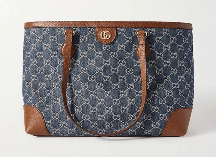 一款绝不错的百搭tote bag!以Gucci经典的双G提花丹宁面料制作,休闲中带着优雅气息,与任何造型都能轻易配搭。采用茶色纹理皮革饰边,更有效保护容易磨损的包身边缘。容量超大,适合作为通勤包,实用指数满分。