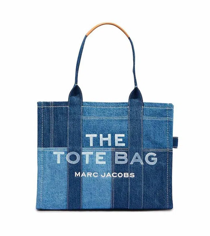 中性风的tote bag,男女皆使用。采用水洗丹宁面料,打造出自然做旧的效果,加上吸睛的拼接设计,充满随性休闲气息。具备两种佩戴方式,可手提也可以斜挎上身,长肩带还可以调整长短,价格也相当吸引人。