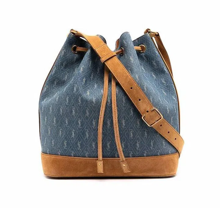 温柔复古感的水桶袋,丹宁面料上印有品牌字母图案,缀以皮革饰边,带来简约的辨识度。可调节的肩带也非常实用,轻松配搭日常造型。