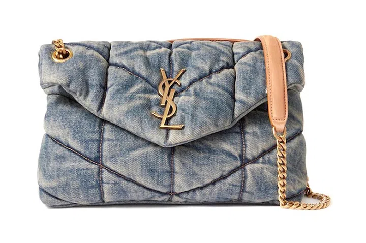Saint Lauren标志性的LouLou手袋,黑色皮革款式对许多手袋迷而言,再熟悉不过。这款独特的丹宁款式,手感柔软,带点胖乎乎的可爱感觉,轻易直击女生的小心脏。金色链条肩带上设有绒面革,仿旧金色 “YSL” 饰牌也为这款休闲手袋增添一份精致感。