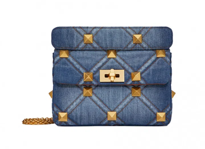 品牌标志性的Roman Stud设计细节与牛仔布料相呼应,诠释出不一般的时尚态度。