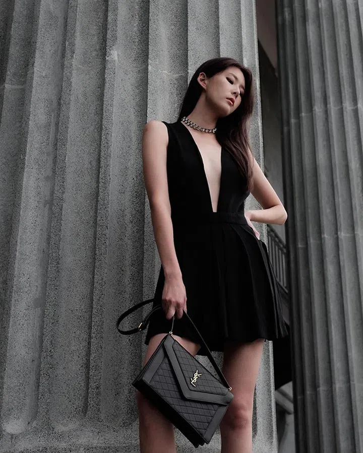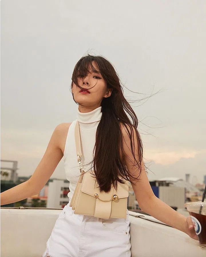 黄思恬身材健康、紧致、修长,摆造型超有模特范,外加其不俗的时尚品味,被《女友》选为2021年我们最爱的本地时尚女星。这款Gaby链袋袋身扁平,并采用柔软轻盈的羊皮打造,磁性开合方便你快速取放物品,当作日常上班包也很适合。