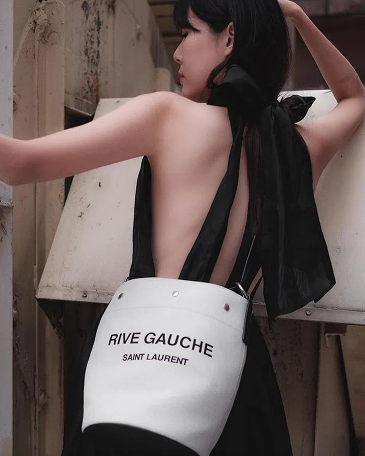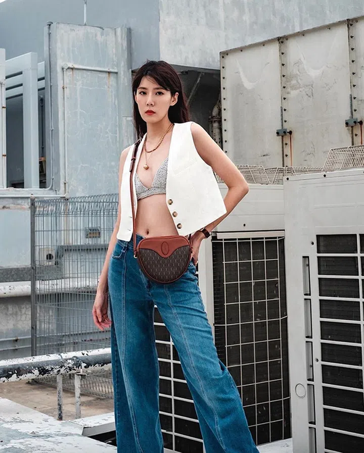 这款Saint Laurent心形肩袋,早前本地女星林慧玲也有背过。两人都以休闲风格服装(并内搭crop top或bralette)搭配,造型轻快、给人活力十足的印象。
