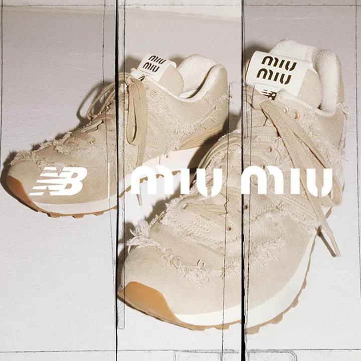 今年Miu Miu春夏系列,Miuccia Prada将New Balance 1980年代的574球鞋进行重新演绎,推出联名设计,让品牌极具功能性的经典运动鞋型散发奢华时尚感。该系列目前已在专店开售。