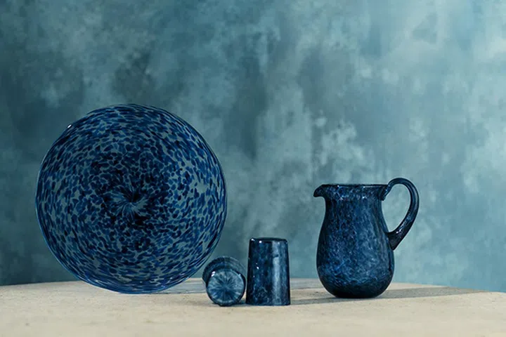 为何品牌的豹纹大多被取名为“Mizza”? 它是用来致敬创办人Christian Dior缪斯Mitzah(Mizza) Bricard的印花,皆因这位特立独行的女人生前最爱穿豹纹时装。 品牌Maison及Baby Dior 艺术总监Cordelia de Castellane以蓝色诠释 经典豹纹,最新推出色彩诱人的Blue Mizza玻璃餐具。