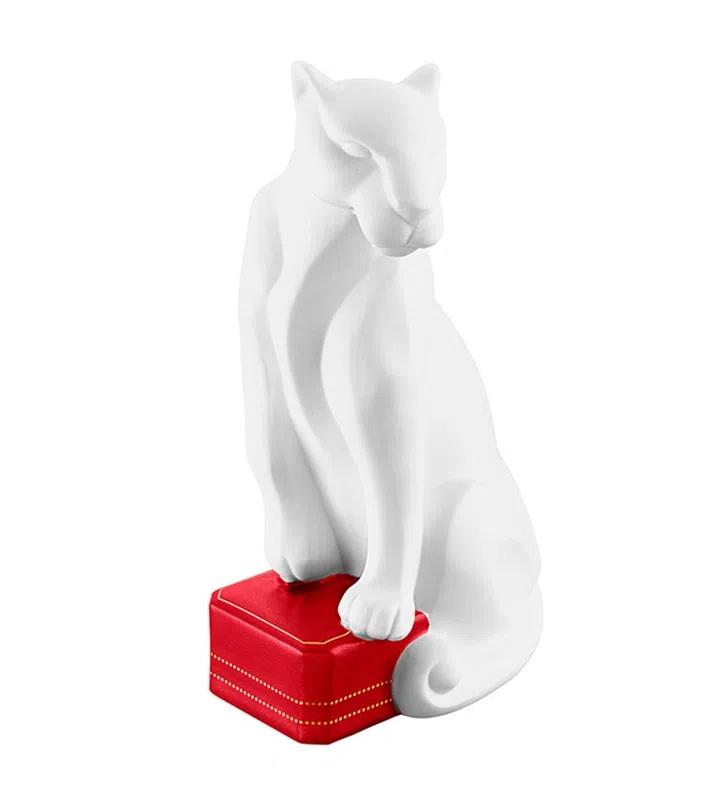 品牌将一系列家居 配件取名为Diabolo, 灵感正是来自昔日玩具——扯铃,寓意 趣味性及玩味。 系列融入众多品牌 标记,如甲虫、“自由 之鸟”、制服Cartier bellboy及经典红色首饰盒等。这款以纯白美洲豹“守护” 首饰盒的扑满, 无论是真用来存零钱或纯粹当摆设, 都漂亮之极no?