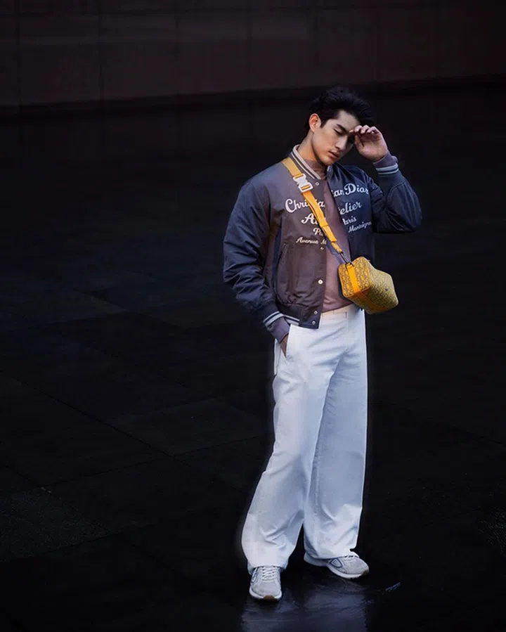 Ayden超过一米八的高挑身型,穿上剪裁时尚的Dior男装系列,以及Dior B30运动鞋。运动鞋的现代感流线廓形,无论搭配任何造型似乎都相得益彰。