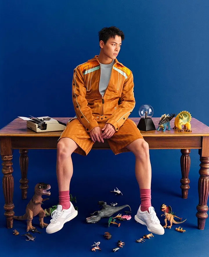 本地时尚男神陈泂江穿着质感满分的米白色Onitsuka Tiger Moage Co运动鞋,搭配一色系穿搭,气场十足的施展街头潮男魅力。鞋子自带粗犷(但同时低调)的设计,为整体造型增添不少个性。