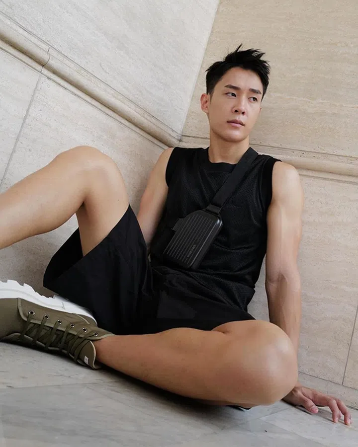 本地HST男团成员之一的邓伟德Tyler“踏入”舒适圈,将原本与大衣是绝配的高筒靴,改搭舒适的无袖运动装,穿出很有惊喜的运动风时尚。胸前挎着的Rimowa铝镁合金吊带包,更提升了整体造型的精致感。