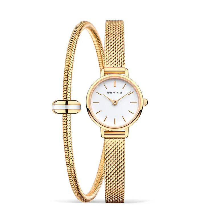 Bering的22mm表径金色腕表及手链套装,推荐给喜欢小表的时尚妈妈们。