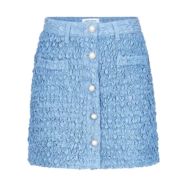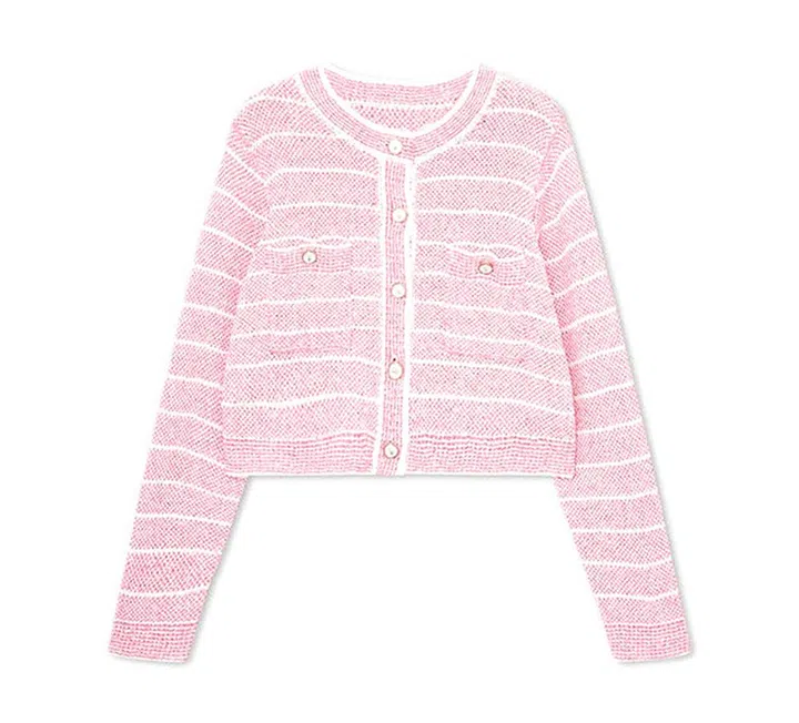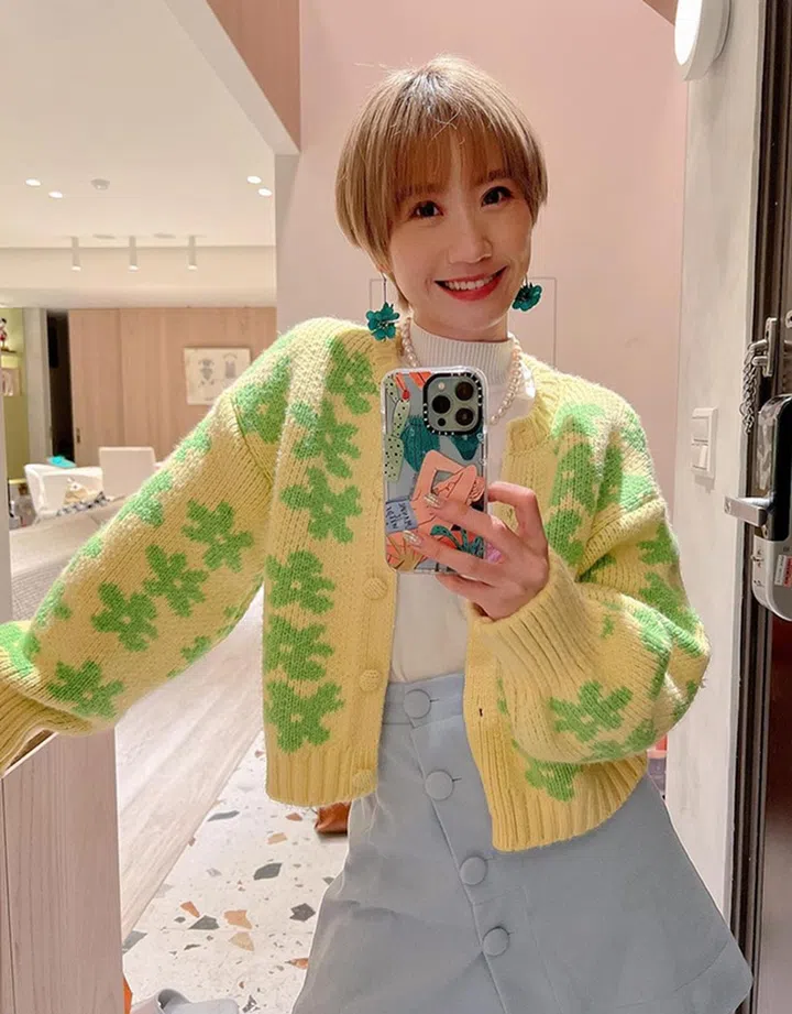 针织单品视觉上能给人舒服、可爱的印象。建议:可选择印花不太繁琐的设计,比如Lulu身上的花卉印花,或是Pomelo与Barbie品牌合作的这条纹印花针织外套,穿上让对方顿时有“想保护你”的冲动。