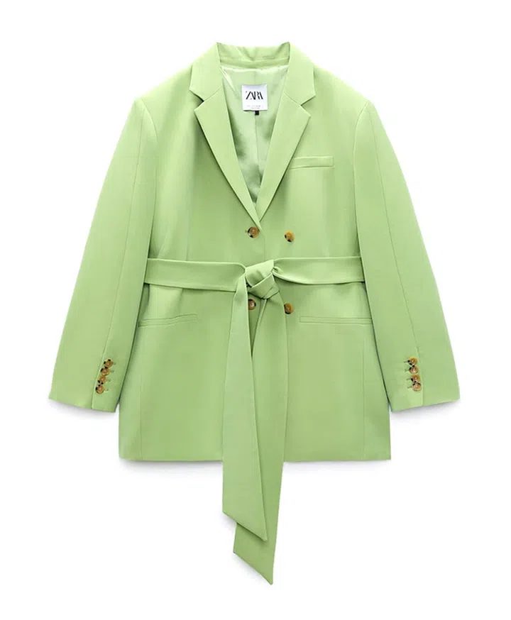搭配的长裤尽量选择与西装外套材质、颜色相同的设计,穿出“清一色”时尚美。