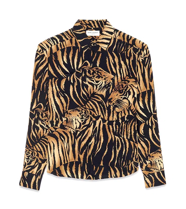 除了虎纹包包,敢于大胆尝试时尚风格的你,也不要错过这款设计独特的“老虎”衬衣——看似虎纹,仔细打量原来藏有数只猛虎,设计极具艺术趣味。
