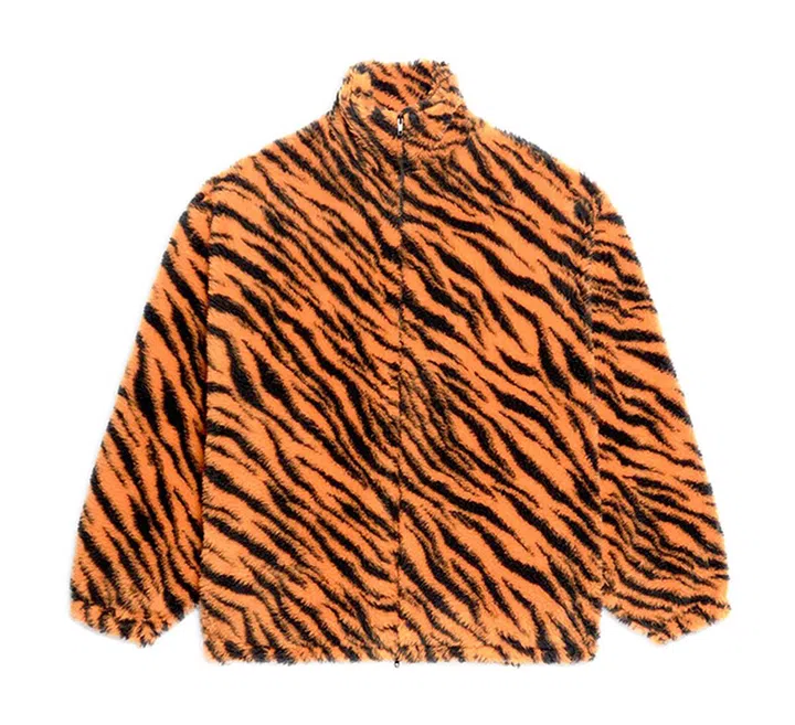这款虎纹毛绒外套来自男装系列,但对于喜欢大外套的你,正好打造舒适慵懒的“可爱老虎”造型。可以内搭短版背心,露出肩膀穿着,让造型又甜又辣——也推荐你看:#单身即地狱 宋智雅的拽甜私服。