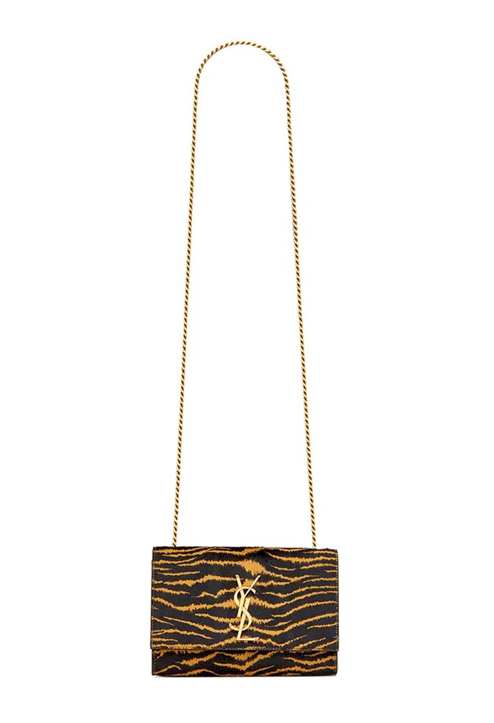 动物纹向来是Saint Laurent的拿手好戏,今年Saint Laurent翻完老虎纹元素,设计尽显时尚野性。精致的Kate链袋,以毛皮纹理的皮革打造,为手袋增添奢华质感。