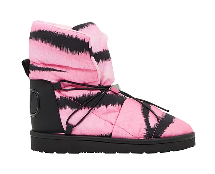 喜欢粉色调的你,也不妨入手这款带可调节鞋带和束绳的虎纹短靴(背后还装饰有醒目的 VLogo 标记)。用来当作潮搭单品,非常instagrammable。