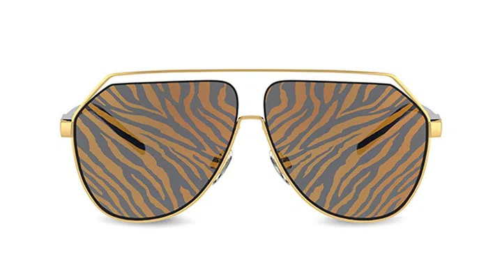 除了把虎纹穿上身,你还可以戴上虎纹墨镜让造型虎虎生威。跟以往的logo印花墨镜一样,佩戴上它的时候图案并不会遮挡你的视线,但是从表面却看得到生动虎纹,拜年时是不是更拉风了?