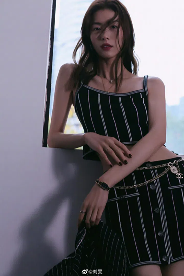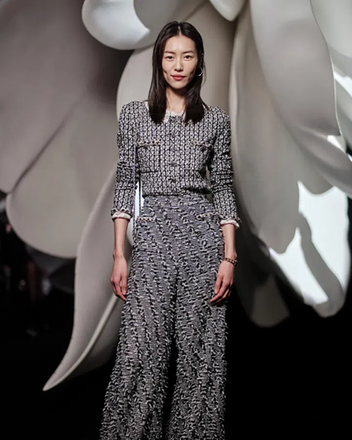 刘雯今年也出席观看Chanel秋冬大秀,她分享说自己喜欢这个系列服装所展现的冲突感,正如山茶花只在冬天盛开,柔美细腻却无比坚韧,充满力量。同样,她的外型也极具冲突感,既纤瘦又有力,既优雅又帅气。