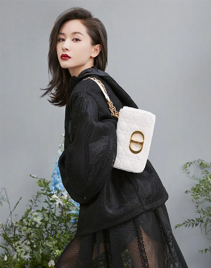 奚梦瑶以Dior条纹西装演艺这款Caro链袋,穿出了知性的绅士范。