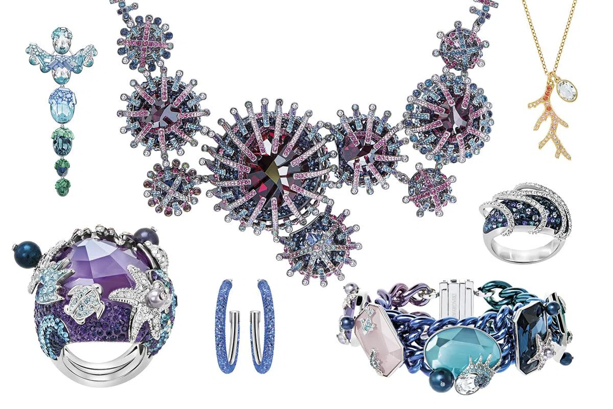 奥地利精品品牌Swarovski配合热情的春夏,推出以海洋为主题的璀璨首饰系列。命名为Sea of Sparkle,整个系列以碧绿、粉红、深蓝等鲜艳水晶堆砌成珊瑚及贝壳类造型,亮眼漂亮!