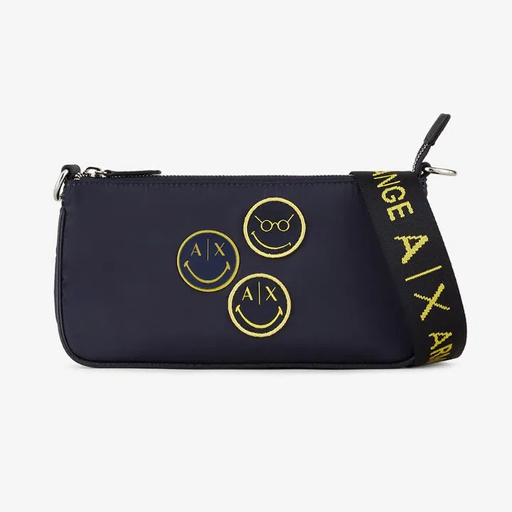 今年时逢SmileyWorld®创立五十周年,A | X结合两大品牌标识,呈现两种轻松愉快的创意设计。一种设计以Armani Exchange品牌logo字母取代SmileyWorld®的眼睛,另一设计则以Giorgio Armani极具辨识度的眼镜与微笑为灵感。不仅让SmileyWorld®印花覆满休闲外套、帽子及迷你针织手袋,也让其化作贴布装点羽绒服、外套、卫衣、T恤、袜子、运动鞋和背包。