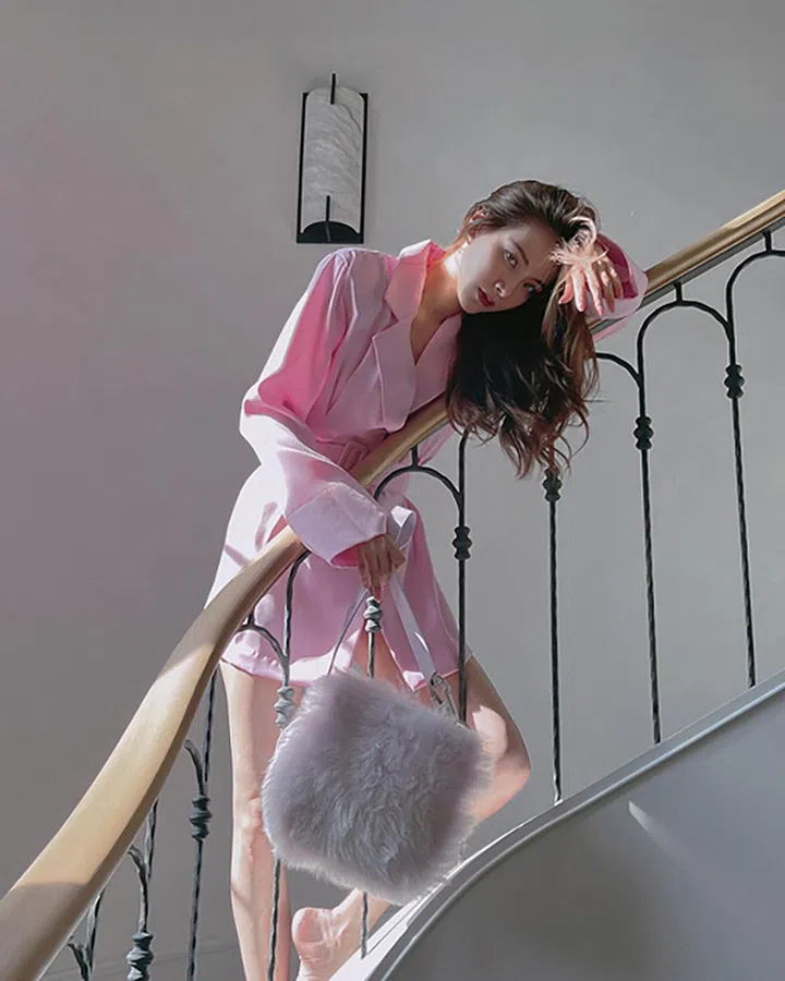 泰国女演员Baifern是NUYOU十月号封面人物。她外型甜美,笑容充满感染力,服装穿搭更是极具“纯欲”氛围,无论男女都很难不被她吸引。单品 #1 推荐,迷你版尺寸的西装上衣/衬衣(dress coat早自2022年春夏就大行其道),可选择粉色、米白色、丁香紫等温柔色调,质地以轻盈为佳(如丝质、醋酸面料等)。学Baifern搭配一款“软糯”的毛绒手袋,是不是氛围感拉满?