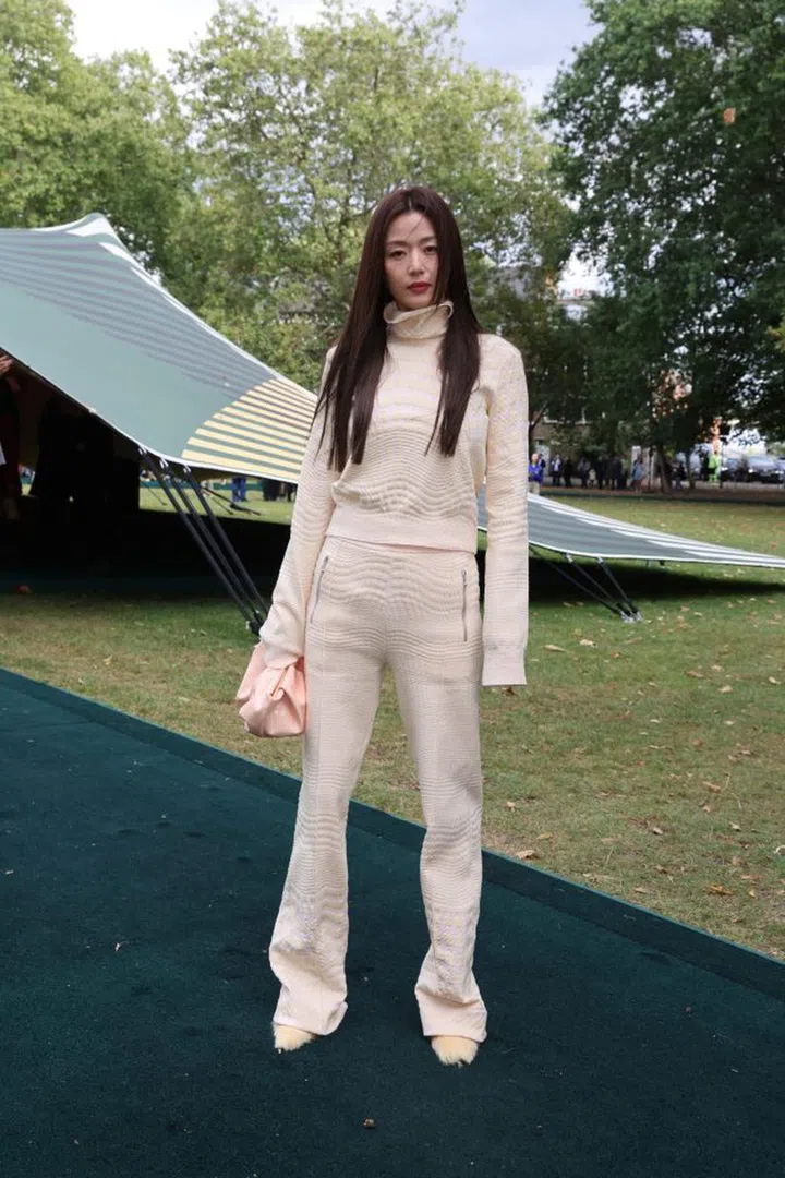韩国女神全智贤和Bright Vachirawit、陈坤一起作为品牌大使出席Burberry 2024春夏时装秀。她穿着品牌2024早春度假系列的浅色高领套装,并搭配Rose clutch“玫瑰包”,造型柔美又前卫。