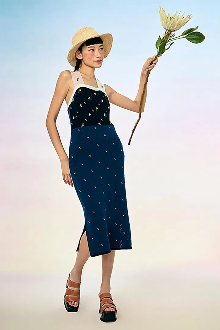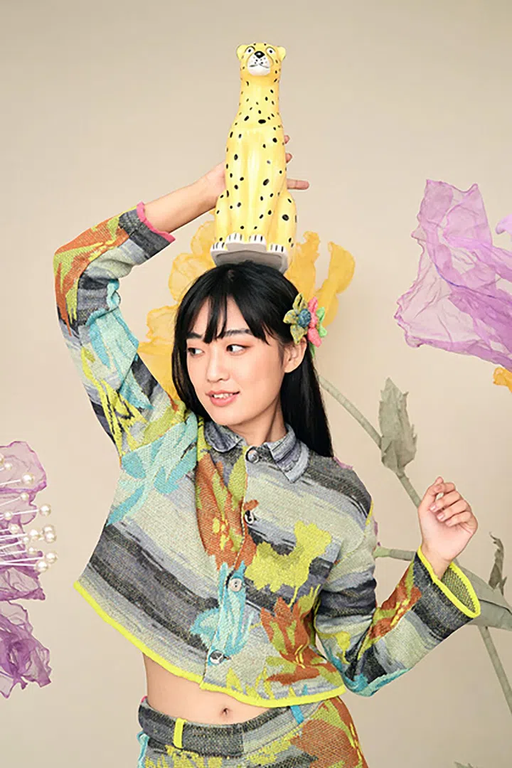 香港针织品牌YanYan由两位幼时好友——前Rag&Bone(美国时尚品牌)的针织部总监Phyllis Chan和设计师Suzzie Chung共同创立。两位创办人对香港电影+流行文化情有独钟,因此设计里也经常出现这些元素。例如这款针织外套以中国水墨画常使用的百合花(带有“纯洁”之意)为元素,配上现代的短款剪裁,将中西合璧发挥得恰到好处。